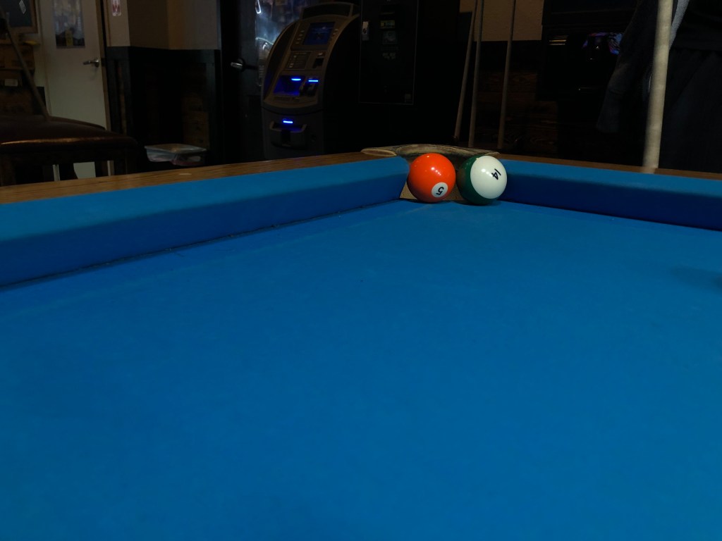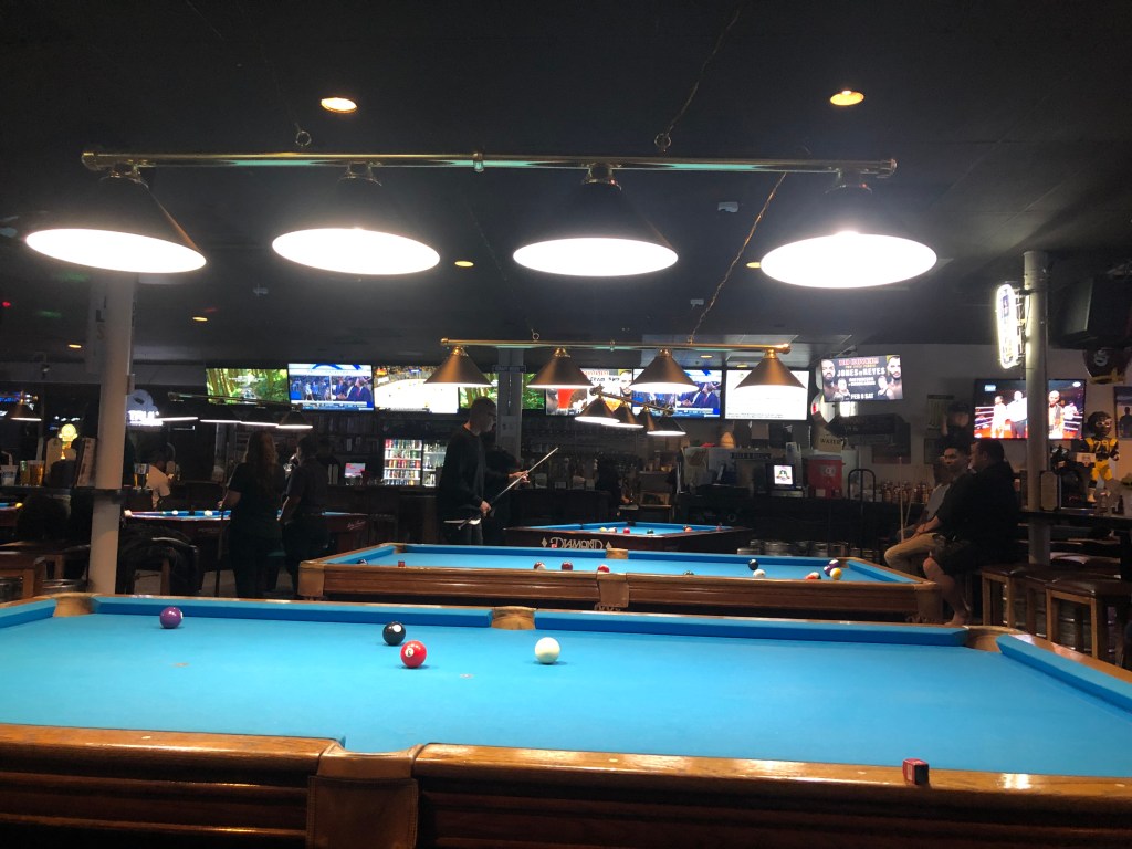 After finishing my quite tasty beer, I was finally able to get a table to play pool with my buddy. The rates to play pool were 9.95$ an hour, which isn’t outrageous but I have defiantly been to other pool halls that had cheaper rates.